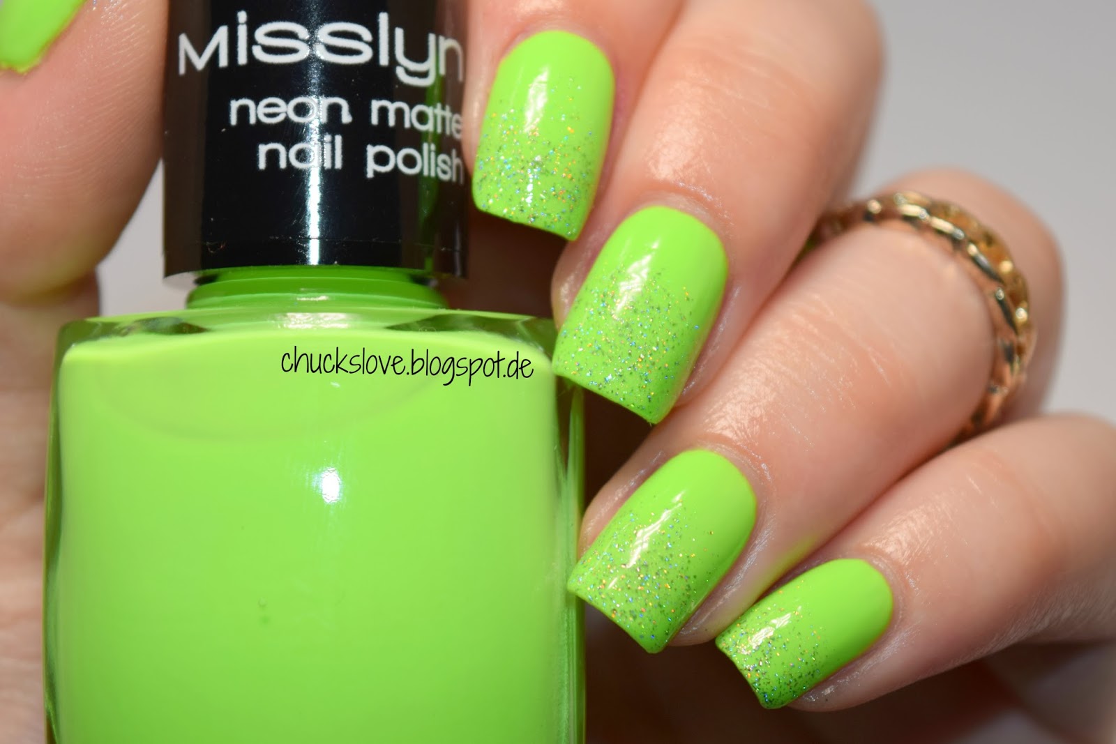 Nach der doch eher zarten Farbe von gestern habe ich heute einen absolut knalligen Lack für euch. Misslyn hat vor einigen Wochen eine Neon Kollektion bestehend aus Grün, Gelb, Orange und Pink herausgebracht.